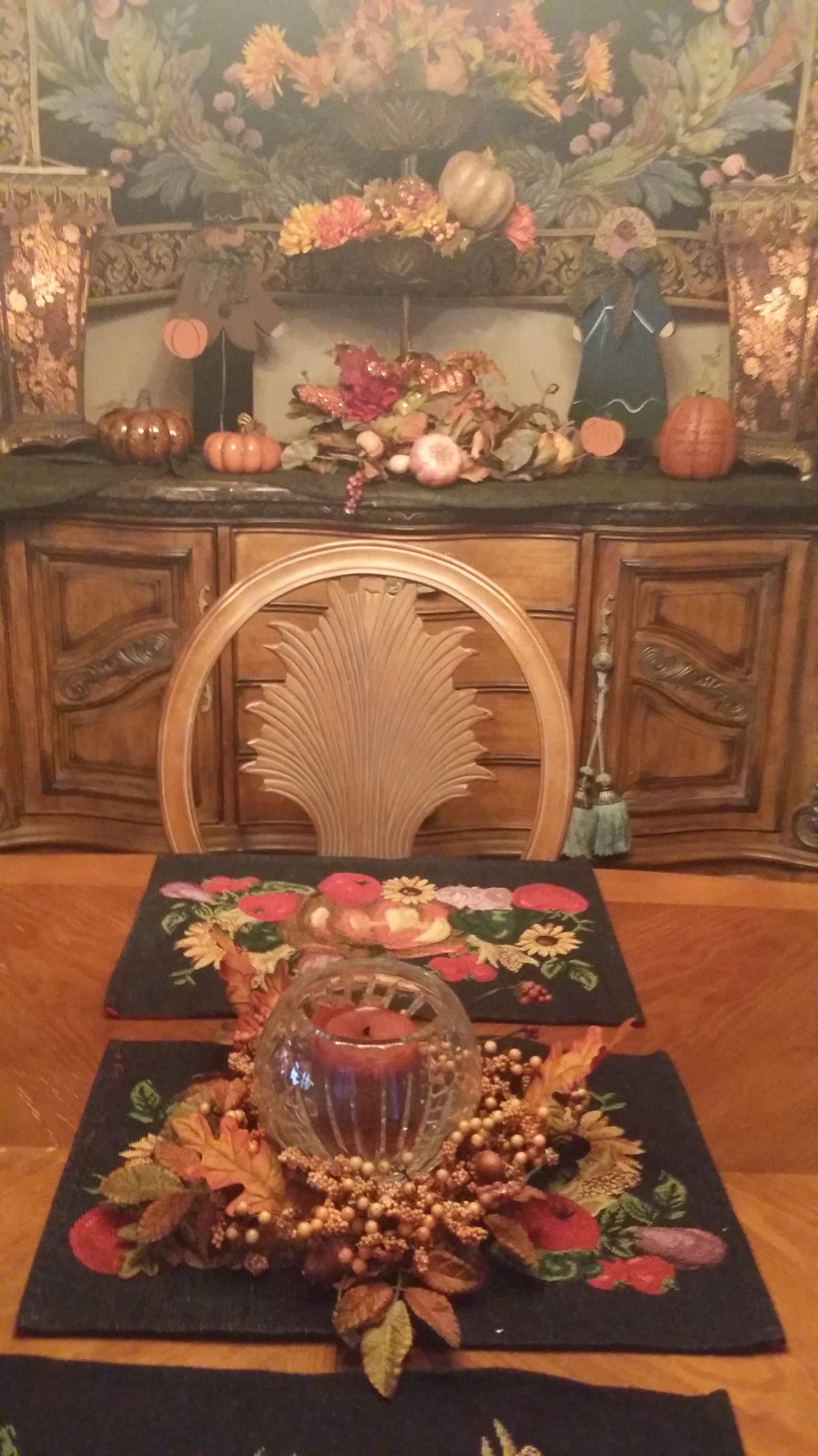 As soon as I got through placing the lights in the garland on the mantle,the trees decorated with Fall leaves and lights, plus a few lighted pumpkins in the courtyard, I sat down with a glass of tea to enjoy the different feel, Randy’s phone rang. I heard him answer and tell the person on the other end of the line that “yes, he would take care of it right away”! When he walked in I ask him what he would be taking care of. He said it was the electric company asking us to please turn off some of the lights. That we blew a fuse in the neighborhood and all the neighbors were calling, complaining. I couldn’t believe it. When I said, “really, you are kidding me” he said, “yes, but I’m sure that I will be having to come out of retirement to pay our electric bill.”